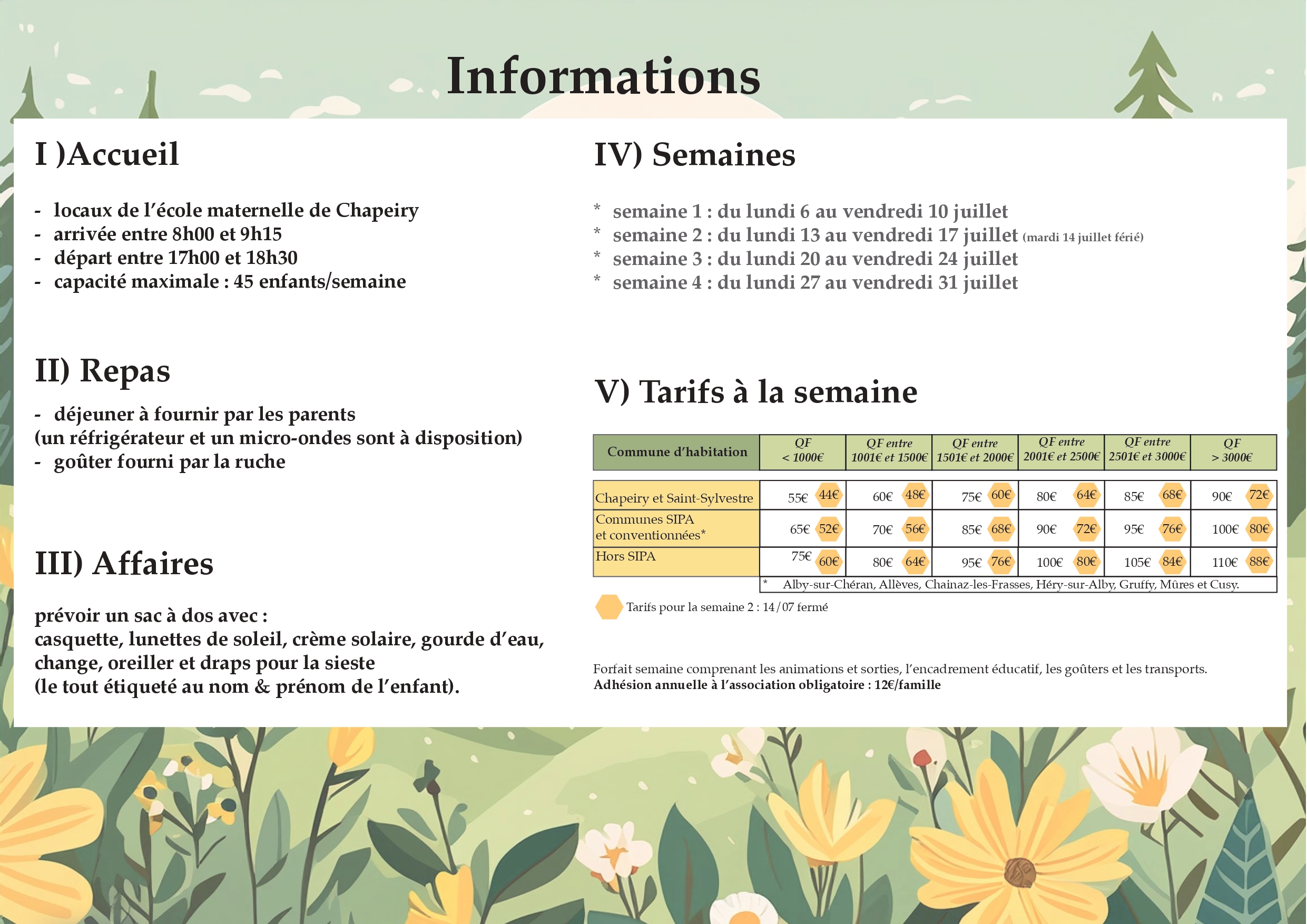 Activités sportives, culturelles et linguistiques -et le centre aéré "La Ruche".